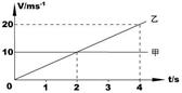甲、乙两车在同一地点同时沿同一方向做直线运动,其v-t图象如图所示,则( )![]()