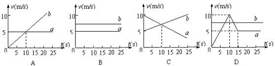 甲、乙两车在公路上沿同一方向做直线运动,在t=0时,乙车在甲车前50m处,它们的v-t图象如下图所示,下列对汽车运动情况的描述正确的是 ( )![]()