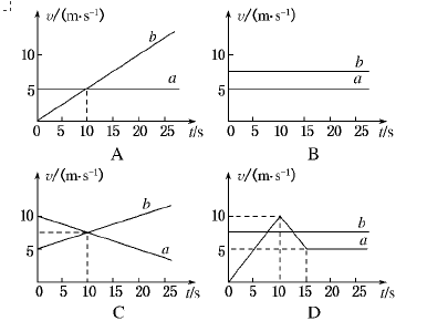 甲?乙两辆汽车在平直的公路上沿同一方向做直线运动,t=0时刻同时经过公路旁的同一个路标.在描述两车运动的v-t图中(如图),直线a?b分别描述了甲?乙两车在0~20 s的运动情况.关于两车之间的位置关系,下列说法正确的是( )![]()