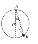 如图所示,一根轻质细弹簧,一端固定在竖直放置的圆环顶点A,另一端与套在圆环上的小球连接,小球可在光滑圆环上自由移动。把小球移到B点时释放,小球恰好静止,弹簧与竖直方向的夹角为