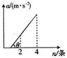 先后用相同材料制成的橡皮条彼此平行地沿水平方向拉同质量为m的物块,且每次橡皮条的伸长量均相同,物块m在橡皮条拉力作用下所产生的加速度a与所用橡皮条的数目n的关系如图所示。若更换物块所在水平面的材料,再重复这个实验,则图中直线与水平轴线间的夹角θ将![]()