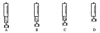 如图所示,质量为m的小圆板与轻弹簧相连,把轻弹簧的另一端固定在内壁光滑的圆筒底部,构成弹簧弹射器。第一次用弹射器水平弹射物体,第二次用弹射器竖直弹射物体,关于两次弹射时情况的分析,正确的是 ( )![]()
