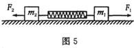如图所示,两个质量分别为m1=2kg,m2=3kg的物体置于光滑的水平面上,中间用轻质弹簧秤连接。两个大小分别为F1=30N、F2=20N的水平拉力分别作用在m1、m2上,则( )![]()