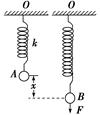 数为k,小球重力为G,平衡时球在A位置,今用力F将小球向下拉长x至B位置,则此时弹簧的弹力为( )![]()