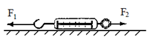 如图所示,某一弹簧秤外壳的质量为m,弹簧及与弹簧相连的挂钩质量忽略不计,将其放在水平面上.现用两水平拉力F1、F2分别作用在与弹簧相连的挂钩和与外壳相连的提环上,则关于弹簧秤的示数,下列说法正确的是( )![]()