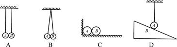 下列四个图中,所有的球都是相同的,且形状规则质量分布均匀.甲球放在光滑斜面和光滑水平面之间,乙球与其右侧的球相互接触并放在光滑的水平面上,丙球与其右侧的球放在另一个大的球壳内部并相互接触,丁球用两根轻质细线吊在天花板上,且其中右侧一根线是沿竖直方向.关于这四个球的受力情况,下列说法正确的是( )![]()