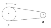 如图所示传动带装置,大轮为主动轮,通过皮带带动从动轮逆时针转动(皮带与两轮之间不打滑),则此时皮带上的两点P和Q受到轮子的摩擦力方向分别是![]()