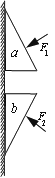 a、b为完全相同的截面为直角楔形物体,分别在垂直于斜边的恒力F1、F2 作用下静止在相同的竖直墙面上,如图所示.下列说法正确的是( )![]()