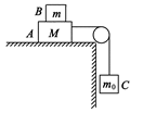 A、B、C三物块质量分别为M、m和m0,作如右图所示的连接,绳子不可伸长,且绳子和滑轮的质量、绳子和滑轮的摩擦均可不计,若B随A一起沿水平桌面做匀速运动,则可以判断:![]()
