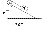 如图所示,表面粗糙的固定斜面顶端安有滑轮,两滑块P、Q用轻绳连接并跨过滑轮(不计滑轮的质量和摩擦),P悬于空中,Q放在斜面上,均处于静止状态。当用水平向左的恒力推Q时,P、Q仍静止不动,则( )![]()