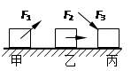 甲、乙、丙三个质量、材料完全相同的物体,由于外力的作用在相同的水平地面上向右做匀速直线运动,如图所示,则![]()