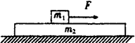 如图所示,质量为m1的木块受到水平向右的恒力F的作用沿质量为m2的长木板水平向右滑行,长木板保持静止状态.已知木块与长木板间的动摩擦因数为μ1,长木板与水平地面间的动摩擦因数为μ2,则![]()