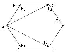 如图所示,ABCDEF为一个正六边形,现以A为顶点向其它各定点作矢量线段,并用它们依次表示F1….F5等各力,若其中F3的大小恰为5N,那么这五个力的合力为多大,方向如何?![]()