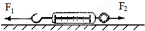 如图所示,一放在光滑水平面上的弹簧秤,其外壳质量为m,弹簧及挂钩质量不计,在弹簧秤的挂钩上施一水平向左的力F1,在外壳吊环上施一水平向右的力F2,则产生了沿Fl方向上的加速度