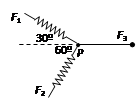 如图所示的水平面上,橡皮绳一端固定,另一端连接两根弹簧,连接点P在F1、F2和F3三力作用下保持静止。下列判断正确的是:( )![]()