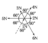 如图所示,在同一平面内,大小分别为1 N?2 N?3 N?4 N?5 N?6 N的六个力共同作用于一点,其合力大小为( )![]()