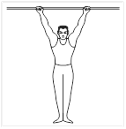质量为m的体操运动员,双臂竖直悬吊在单杠下,当他如图增大双手间距离时![]()