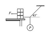 如图所示,三个物块重均为100N,小球P重20N,作用在物块2的水平力F=20N,整个系统平衡,则![]()
