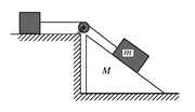 如图所示,物体m通过定滑轮牵引另一水平面上的物体沿斜面匀速下滑,此过程中斜面仍静止,斜面质量为M,则水平地面对斜面体 ( )![]()