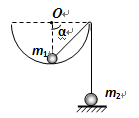 如图所示,一个半球形的碗放在桌面上,碗口水平, O点为其球心,碗的内表面及碗口光滑。一根细线跨在碗口上,线的两端分别系有质量为m1和m2的小球。当它们处于平衡状态时,质量为m1的小球与O点的连线与水平线的夹角为α=90°,质量为m2的小球位于水平地面上,设此时细线的拉力大小为T,质量为m2的小球对地面压力大小为N,则( )![]()