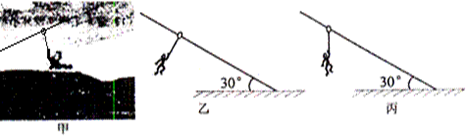 如图甲所示,高空滑索是一项勇敢者的游戏,一个人用轻绳通过轻质滑环悬吊在倾角为θ=30°的足够长的钢索上运动,在下滑过程中可能会出现如图乙和如图丙所示的两种情形,不计空气阻力,则下列说法中正确的是![]()