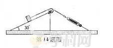 如图所示,与水平面夹角为30°的固定斜面上有一质量m=1.0kg的物体。细绳的一端摩擦不计的定滑轮与固定的弹簧秤相连。物体静止在斜面上,弹簧秤的示数为4.9N。关于物体受力的判断(取g=9.8m/s2),下列说法正确的是![]()