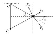 如图所示,用两根细线把A?B两小球悬挂在天花板上的同一点O,并用第三根细线连接A?B两小球,然后用某个力F作用在小球A上,使三根细线均处于直线状态,且OB细线恰好沿竖直方向,两小球均处于静止状态.则该力可能为图中的( )![]()