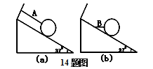 如图所示,光滑斜面的倾角都是370,分别用平行于斜面的细绳A(如图(a))和水平细绳B(如图(b)),系住完全相同的小球,则(a)(b)图中斜面对小球的弹力大小之比NA:NB和细绳对小球的弹力大小之比TA:TB分别为( )(已知sin370=0.6,cos370=0.8)![]()