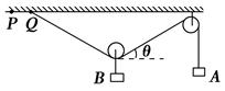 的物体,保持静止。当人拉绳子向右走两步后静止不动。则各力变化为( ) ![]()