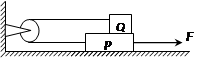 如图所示,位于水平桌面上的物块P,由跨过定滑轮的轻绳与物块Q相连,从滑轮到P和到Q的两段绳都是水平的。已知Q与P之间以及P与桌面之间的动摩擦因数都是μ,两物块的质量都是m,滑轮的质量、滑轮上的摩擦都不计。若用一水平向右的力F拉P使它做匀速运动,则F的大小为 ( )![]()