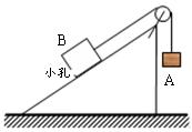 如图所示,A为木块,B为装有沙子的铁盒,通过固定斜面上的定滑轮用细线相连,整个系统处于静止状态。若从某时刻起铁盒B中的沙子从图中小孔开始漏出,在全部漏出之前A、B一直处于静止状态,在这一过程中斜面对铁盒B的静摩擦力(除B与斜面间摩擦外,其它接触处的摩擦均可忽略不计)( )![]()