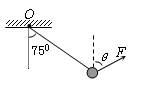 如图所示,一个重为5N的大砝码,用细线悬挂在O点,现在用力F拉砝码,使悬线偏离竖直方向30°时处于静止状态,此时所用拉力F的最小值为![]()