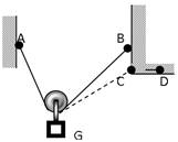 如图所示,不计滑轮质量与磨擦,重物挂在滑轮下,绳A端固定将B端绳由B移到C或D(绳长不变)其绳上张力分别为TB,TC,TD,绳与竖直方向夹角θ分别为θB,θC,θD则( )![]()