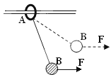 如图,轻绳的两端分别系在圆环A和小球B上,圆环A套在粗糙的水平杆上,现用水平力F将小球B缓慢地拉至虚线处,在此过程中A的位置操持不变,则环A对杆的摩擦力f 和压力N 如何变化:( )![]()