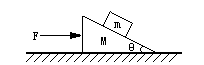 一质量为M,倾角为θ的楔形木块,静置在光滑水平面上,质量为m的物块,置于楔形木块的光滑斜面上。为了保持物块相对斜面静止,可用一水平力F推楔形木块,则![]()