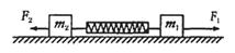 如图所示,两个质量分别为m1=2kg,m2=3kg的物体置于光滑的水平面上,中间用轻质弹簧秤连接。两个大小分别为F1=30N、F2=20N的水平拉力分别作用在m1、m2上,则( )![]()