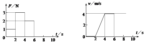 放在水平地面上的一物块,受到方向不变的水平推力F的作用,F的大小与时间t的关系和物块速度v与时间t的关系如图所示。取重力加速度g=10m/s2。由此两图线可以求得物块的质量m和物块与地面之间的动摩擦因数μ分别为![]()