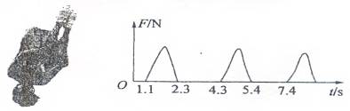 2008年北京奥运会上,中国选手何雯娜获得女子体操蹦床比赛冠军.蹦床运动要求运动员在一张绷紧的弹性网上蹦起、腾空并做空中动作.为了测量运动员跃起的高度,训练时可在弹性网上安装压力传感器,利用传感器记录弹性网的压力,并在计算机上做出压力一时间图象,假如做出的图象如图所示.设运动员在空中运动时可视为质点,则运动员跃起的最大高度为(g取10m/s2 ) ![]()