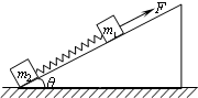 如图所示,质量分别为m1、m2的两个物块间用一轻弹簧连接,放在倾角为θ的粗糙斜面上,物块与斜面间的动摩擦因数均为μ.平行于斜面、大小为F的拉力作用在m1上,使m1、m2一起向上作匀加速运动,斜面始终静止在水平地面上,则