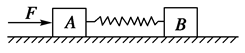 如图物体A叠放在物体B上,B置于光滑水平面上.A,B质量分别为mA=6kg,mB=2kg,A,B之间的动摩擦因数μ=0.2,开始时F=10N,此后逐渐增加,在增大到45N的过程中,则(取g="10" m/s2) ![]()