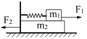 如图所示,一轻弹簧左端固定在长木板m2的左端,右端与小木块m1连接,且m1、m2及m2与地面之间接触面光滑,开始时m1和m2均静止,现同时对m1、m2施加等大反向的水平恒力F1和F2,从两物体开始运动以后的整个过程中,对m1、m2和弹簧组成的系统(整个过程中弹簧形变不超过其弹性限度),正确的说法是![]()