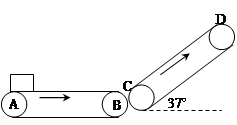 如图所示为粮食仓库中常用的皮带传输装置示意图,它由两台皮带传送机组成,一台水平传送,A、B两端相距;另一台倾斜传送,传送带与地面间的倾角,C、D两端相距,B、C相距很近。水平传送带以沿顺时针方向转动。现将质量为的一袋大米无初速度的放在A端,它随传送带到达B点后,速度大小不变的传到倾斜传送带的C端。米袋与两传送带之间的动摩擦因素均为,取(1)若倾斜传送带CD不转动,则米袋沿传送带CD所能上滑的最大距离是多少?(2)若倾斜传送带CD以的速率沿顺时针方向转动,则米袋从C端运动到D端的时间为多少?