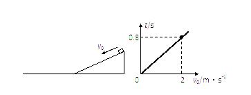用同种材料制成倾角30°的斜面和长水平面,斜面长2.4m且固定,一小物块从斜面顶端以沿斜面向下的初速度v0开始自由下滑,当v0="2" m/s时,经过0.8s后小物块停在斜面上。多次改变v0的大小,记录下小物块从开始运动到最终停下的时间t,作出t-v0图象,如图所示,求:(1)小物块与该种材料间的动摩擦因数为多少?(2)某同学认为,若小物块初速度为4m/s,则根据图象中t与v0成正比推导,可知小物块运动时间为1.6s。以上说法是否正确?若不正确,说明理由并解出你认为正确的结果。