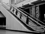 如图所示,一些商场安装了智能化的台阶式自动扶梯。为了节约能源,在没有乘客乘行时,自动扶梯以较小的速度匀速向左上方运行,当有乘客乘行时自动扶梯经过先加速再匀速两个阶段运行。则电梯在运送乘客的过程中![]()
