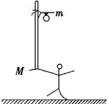 如图所示为杂技“顶杆”表演,一人站在地上,肩上扛一质量为M的竖直竹竿,当竿上一质量为m的人以加速度a加速下滑时,杆对地面上的人的压力大小为: ( )![]()