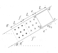 在倾角为θ足够长的光滑斜面上,存在着两个磁感应强度相等的匀强磁场,磁场方向一个垂直斜面向上,另一个垂直斜面向下,宽度均为L,如图所示。一个质量为m、电阻为R、边长也为L的正方形线框abcd.在t=0时刻以速度v0进入磁场,恰好做匀速直线运动。若经过时间t0线框ab边到达gg’与ff’正中间位置时,线框又恰好开始做匀速运动,则下列说法正确的是![]()