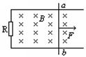 如图所示,水平放置的光滑平行金属导轨上有一质量为m的金属棒ab。导轨地一端连接电阻R,其他电阻均不计,磁感应强度为B的匀强磁场垂直于导轨平面向下,金属棒ab在一水平恒力F作用下由静止起向右运动。则![]()