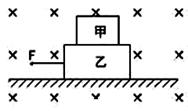 如图所示,甲带正电,乙是不带电的绝缘块,甲、乙叠放在一起置于光滑的水平地面上,空间存在着水平方向的的匀强磁场,在水平恒力F的作用下,甲、乙无相对滑动的一起向左加速运动,在加速运动阶段( )![]()