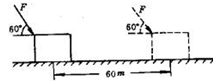 在光滑水平面上,一个人用100N的力与水平方向成60o角推一个箱子前进6m,如图所示,则推力所做的功是 ( )![]()