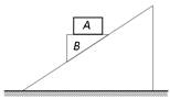如图所示,滑块A和B叠放在固定的斜面体上,从静止开始以相同的加速度一起沿斜面加速下滑。已知B与斜面体之间光滑接触,则在AB下滑的过程中,下列说法正确的是![]()